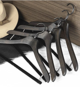 Percha de madera maciza de lujo, gancho de latón, percha para ropa, perchas de madera de nogal negro para ropa